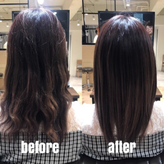 ・カラーや縮毛矯正などケミカルダメージによる広がりやまとまりの悪さをリセットさせ、質感を良くしていきます。